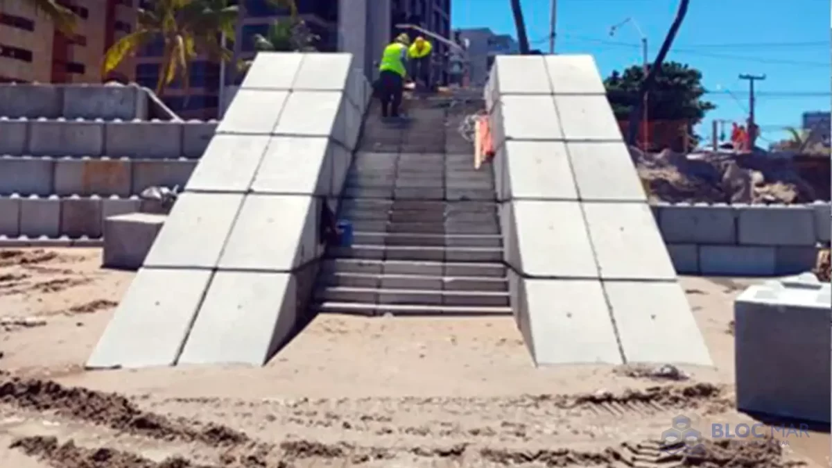 Ao longo da contenção marítima, serão instaladas escadas de acesso à praia, com as mesmas tecnologias, e, para pessoas com mobilidade reduzida, o sistema permite que elas possam acessar e usufruir das praias sem depender de outras pessoas.